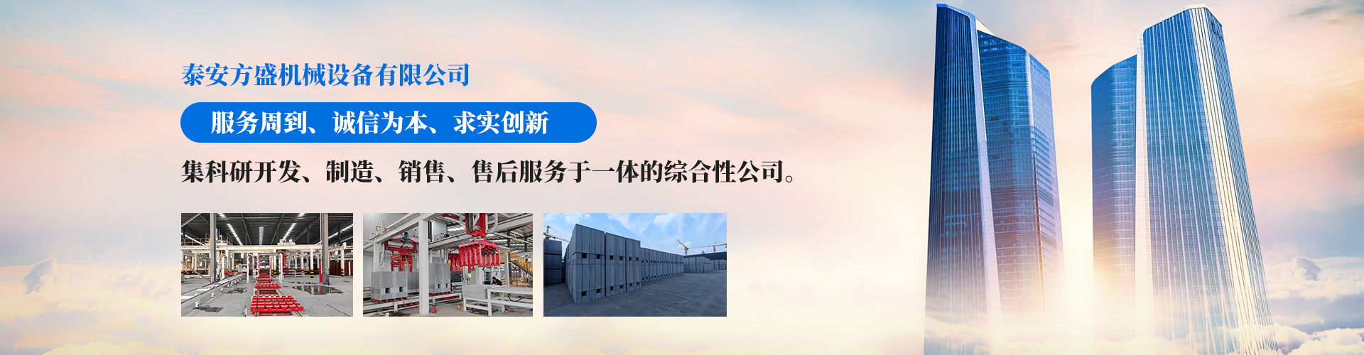 泰安方盛机械设备有限公司位于风景优美的泰山脚下,紧邻京福、京沪高速和高铁泰山站,交通十分便利,是一家集科研开发、制造、销售、售后服务于一体的综合性公司。公司积极引进先进的生产技术,促进产品的自动化程度得到提升。始终围绕环保、节能、利废、降耗、自动化方向指引而努力奋斗。公司始终奉行“服务周到、诚信为本”的经营宗旨,坚持“诚信为本、求实创新”的核心理念,努力超越您的期望值。
